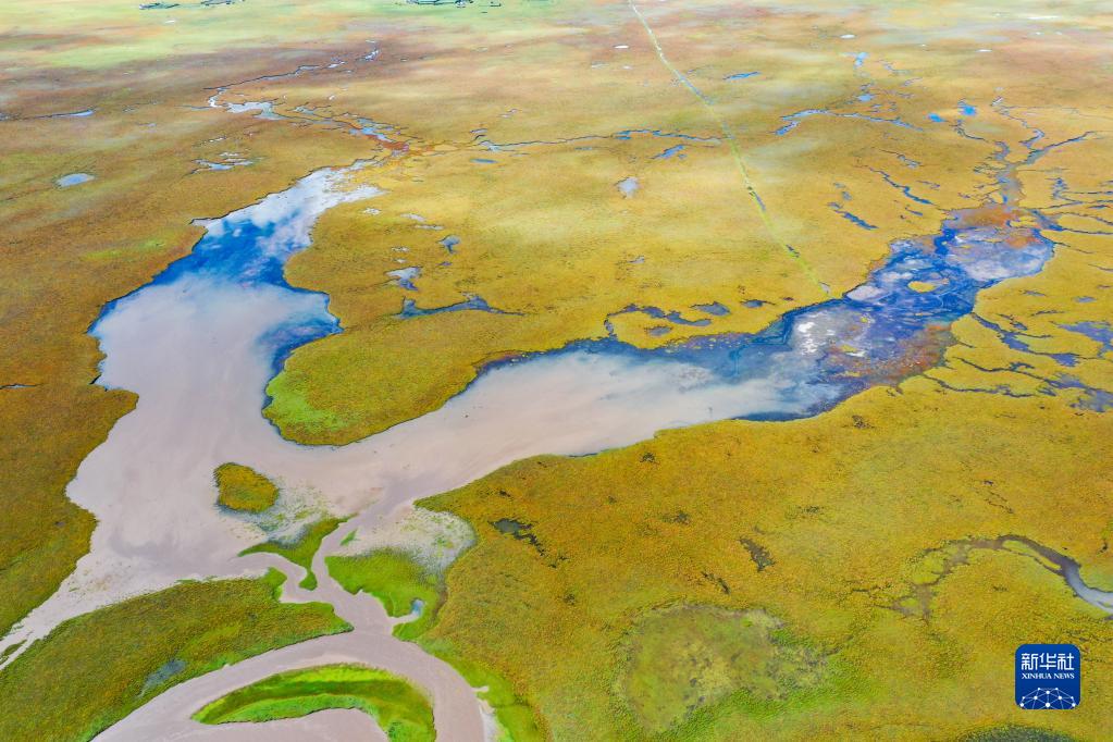 這是瑪曲縣阿萬倉濕地內(nèi)的一處沼澤(9月17日攝,無人機照片)。新華社記者 郎兵兵 攝