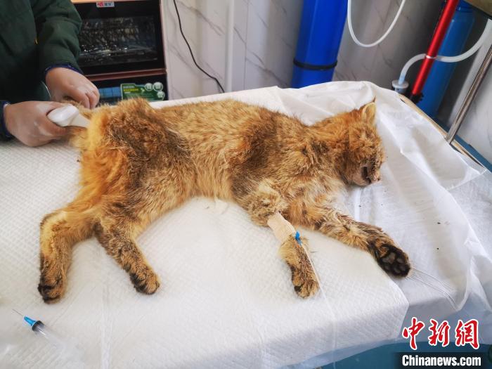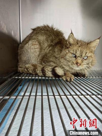 圖為被救護(hù)的荒漠貓“黃老太”。 青海野生動(dòng)物救護(hù)繁育中心供圖