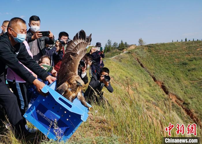 隨后,青海野生動物救護繁育中心放歸兩只前期救護的大鵟。據(jù)悉,今年8月中旬及9月初,該中心救助兩只受傷大鵟,在通過傳染病排查及近一個月的飼養(yǎng)管理后,兩只大鵟恢復情況良好,具備野外放歸能力。