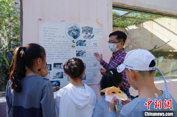 圖為青海野生動物救護繁育中心副主任向?qū)W生介紹荒漠貓。 馬銘言 攝