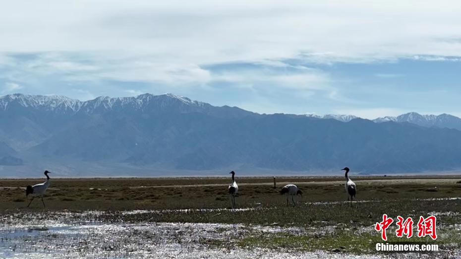 柴達(dá)木盆地烏蘭東大灘濕地現(xiàn)“鳥類大熊貓”黑頸鶴