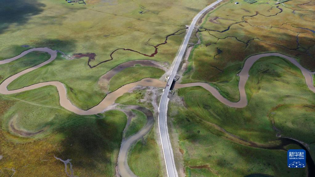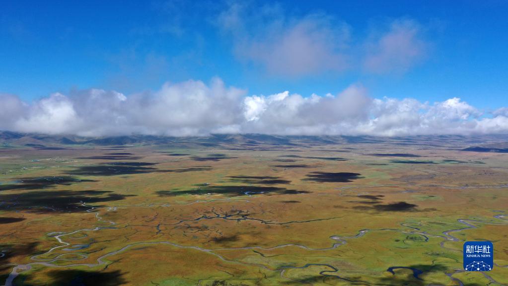 這是2022年9月21日拍攝的瑪曲縣阿萬(wàn)倉(cāng)濕地(無(wú)人機(jī)照片)。新華社記者 陳斌 攝
