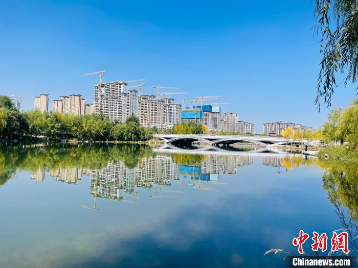 圖為西寧市北川濕地公園河水碧波蕩漾?!O睿 攝