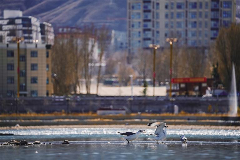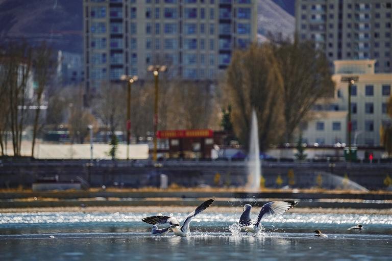 候鳥大約是拉薩入冬的標(biāo)志。初冬時(shí)節(jié),拉魯濕地和拉薩河邊,到處都是從遠(yuǎn)方飛來越冬的黃鴨、斑頭雁。隨著拉薩生態(tài)環(huán)境更加優(yōu)美,這些可愛的精靈選擇在此越冬,讓許多觀鳥愛好者心動(dòng)。每天清晨天還未亮,他們就早早地守候在水邊,只為記錄下候鳥迎著第一縷朝陽翩然飛舞的景象。