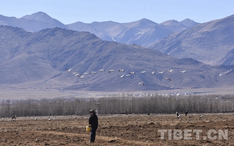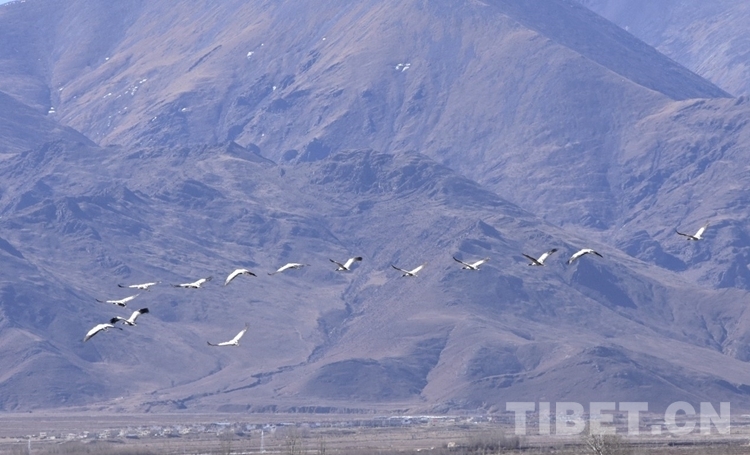 中國西藏網(wǎng)訊 地處雅魯藏布江中游河谷地帶的西藏自治區(qū)拉薩市林周縣,被稱為拉薩“糧倉”。每年的冬季,林周縣虎頭山水庫因兩面夾山,周邊有大片的良田,成為黑頸鶴覓食、夜棲的佳地。