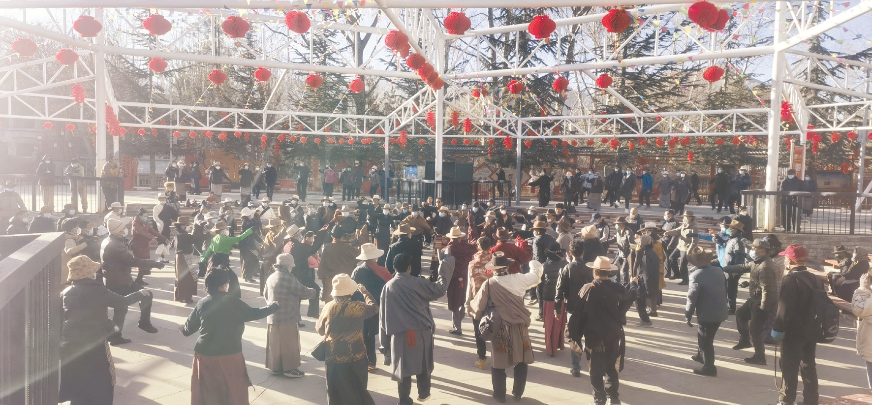 宗角祿康公園是市民群眾戶外活動(dòng)的重要場(chǎng)所,近年來(lái),為豐富群眾精神文化生活,拉薩市大力倡導(dǎo)全民健身,不斷完善公園健身器材,這里已成為市民每天進(jìn)行晨練和休閑的首選之地。一大早,記者來(lái)到該公園看到,藏歷新年臨近,公園內(nèi)到處掛起了紅紅火火的燈籠,讓公園換上了“新裝”,在陽(yáng)光的照射下,鮮艷奪目,喜氣洋洋,與公園風(fēng)景交相輝映,形成一道道靚麗的風(fēng)景線。市民們不約而同地來(lái)到這里開(kāi)展健身操、鍋莊、現(xiàn)代舞等健身活動(dòng)。