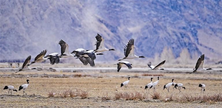 近年來(lái),隨著國(guó)家加大青藏高原生態(tài)保護(hù)力度,西藏多措并舉實(shí)施生態(tài)建設(shè),廣大農(nóng)牧民群眾保護(hù)野生動(dòng)物的意識(shí)不斷提升,黑頸鶴及其棲息地得到了較好的保護(hù),黑頸鶴數(shù)量逐年遞增。