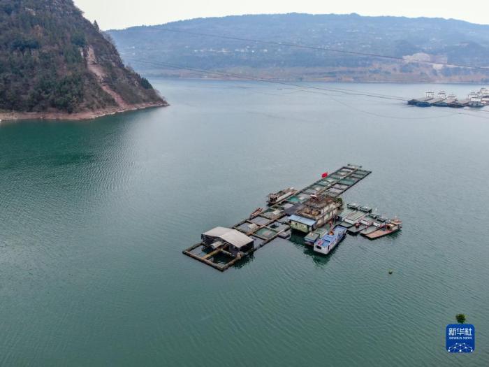 這是三峽庫區(qū)珍稀魚類馴養(yǎng)基地(2022年2月25日攝,無人機照片)。新華社記者 唐奕 攝
