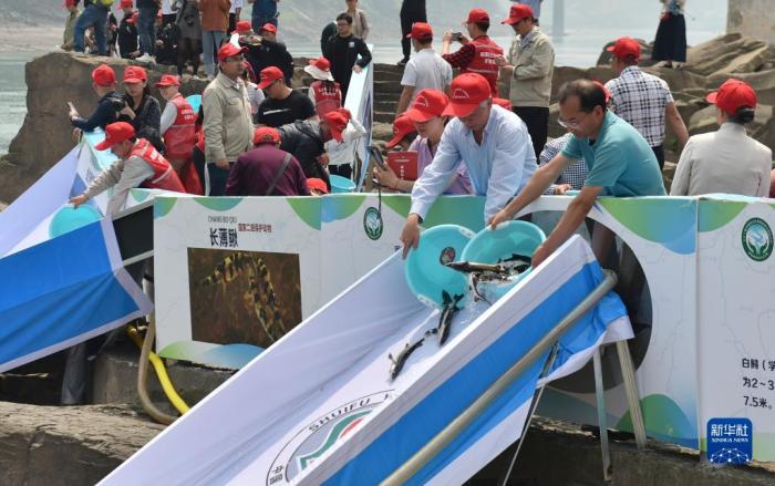 長江上游珍稀特有魚類國家級自然保護區(qū)云南段增殖放流活動在云南省水富市舉行(2021年4月23日攝)。新華社發(fā)