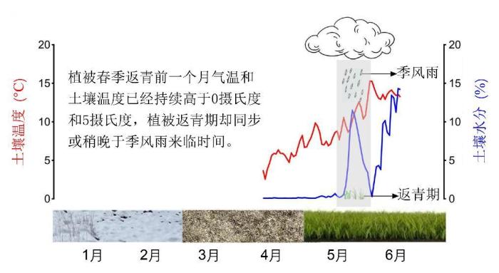 羅天祥指出,本項研究通過在青藏高原中部念青唐古拉山北坡的西藏納木錯高寒湖泊與環(huán)境國家野外科學觀測研究站建立紅外增溫和自動增雨控制實驗平臺,研究團隊對2013-2014年紫花針茅、大花嵩草、釘柱委陵菜3個優(yōu)勢物種返青期與枯黃期物候進行監(jiān)測,并同步記錄氣溫、降水、土壤溫度和土壤水分,解析了增溫2攝氏度、增雨15%和30%對高寒草原-草甸過渡帶優(yōu)勢種物候變化的影響,研究結果明確顯示,降雨增加導致青藏高原高寒草地植被返青提前、枯黃推遲,而與增溫基本無關。