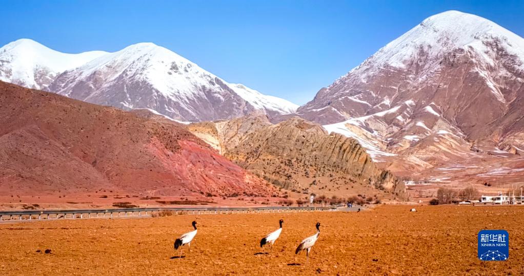近日,西藏拉薩市各區(qū)縣迎來(lái)降雪。群山被白雪覆蓋,高原壯麗唯美。黑頸鶴、斑頭雁等翩躚起舞,拉薩河谷生機(jī)盎然。