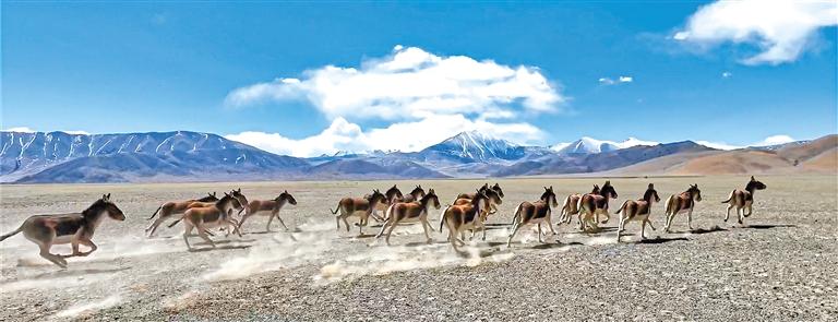 圖為在羌塘國家級自然保護區(qū)內奔跑的藏野驢。邊巴多吉 攝 記者 溫凱 永青 洛桑旦增