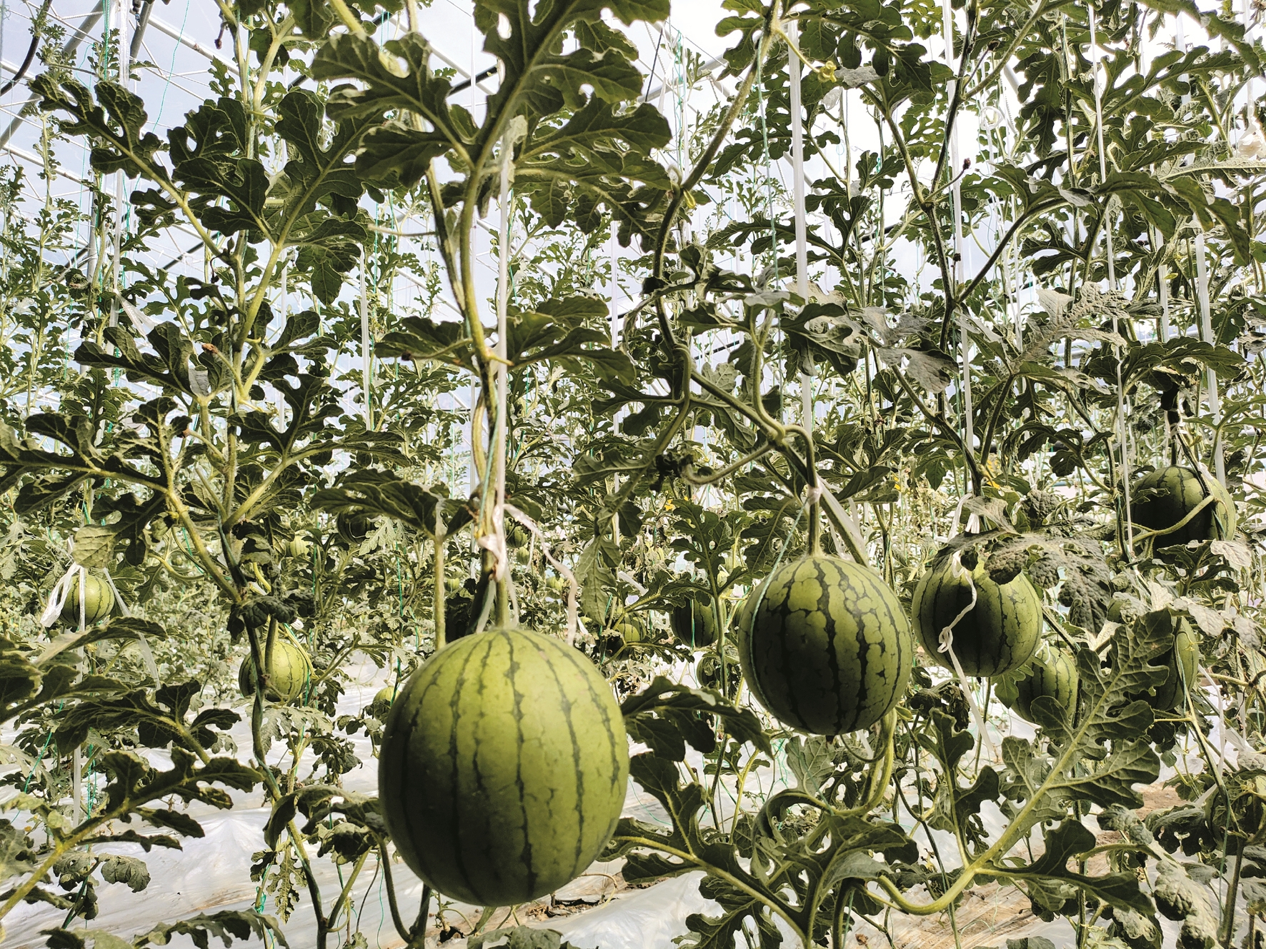 圖為園區(qū)大棚內(nèi)西瓜長勢喜人。 拉薩融媒記者 李從芳攝