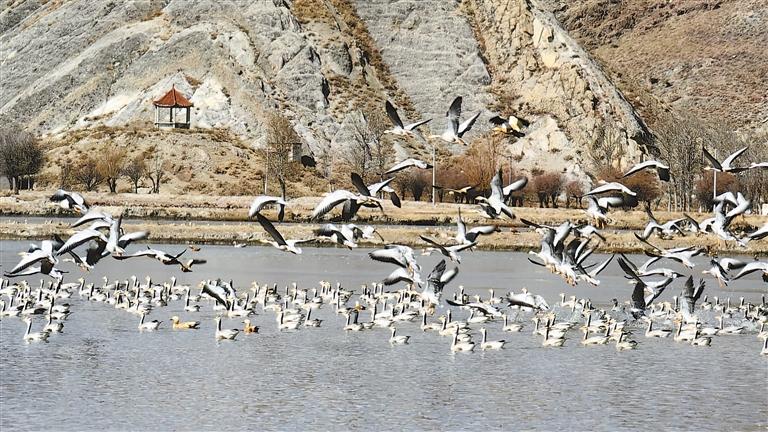 赤麻鴨“定居”青海湖 成為青海湖越冬水鳥絕對優(yōu)勢種