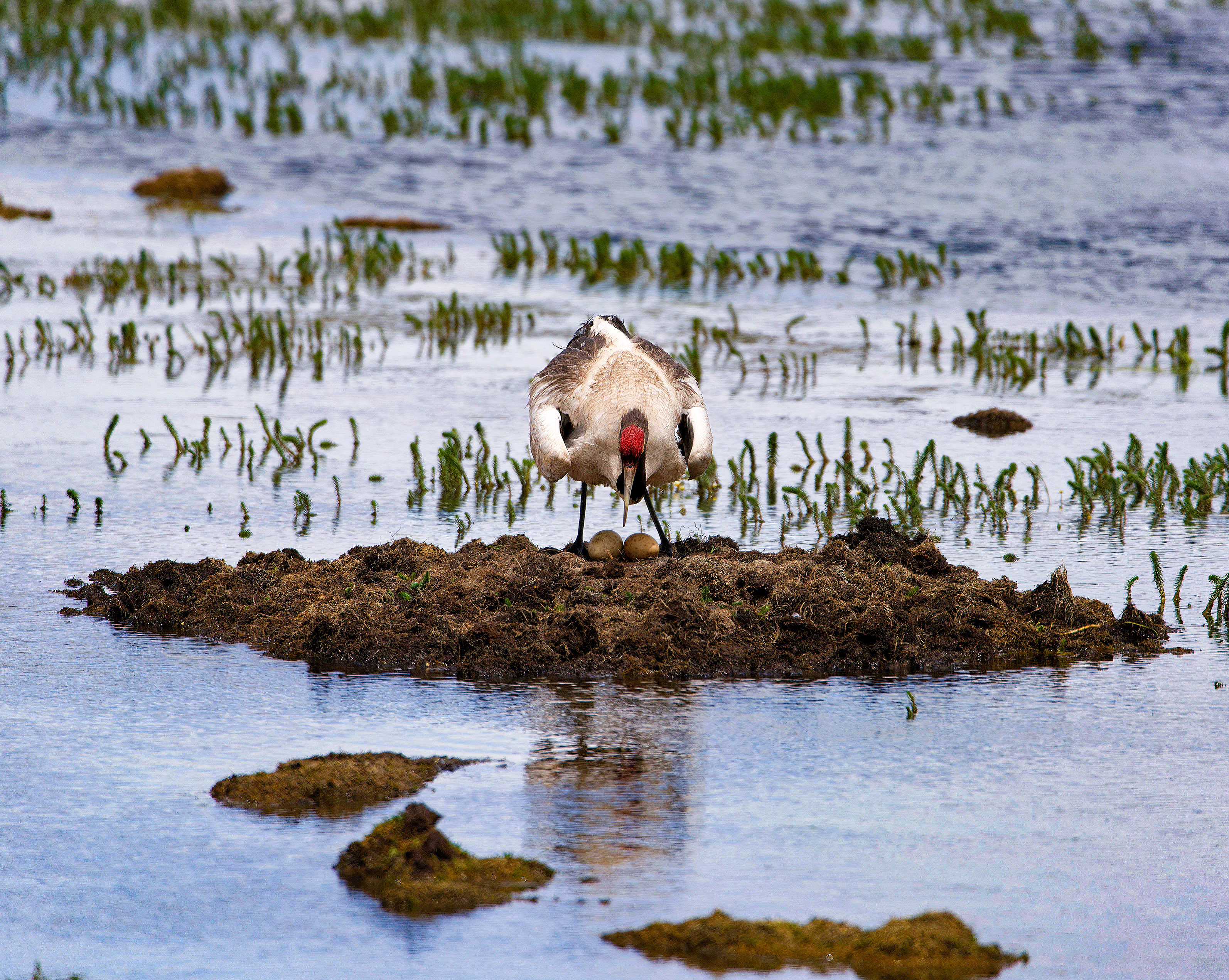 棲息在濕地上孵蛋的母鶴,國家一級保護動物。