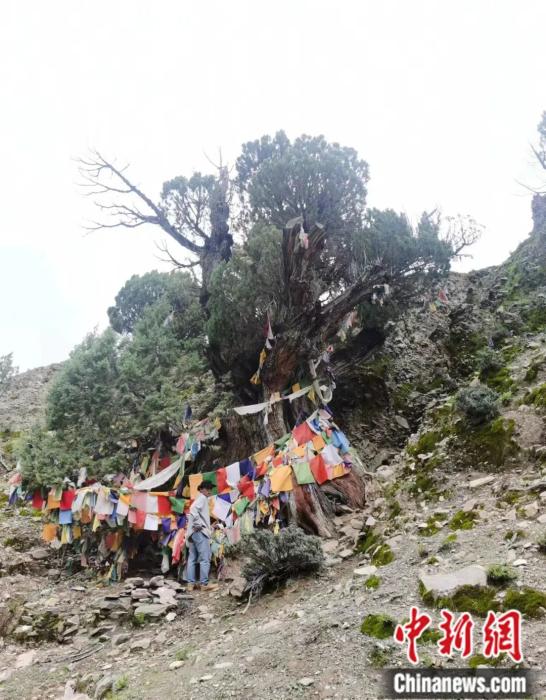 2023年8月,在西藏日喀則市昂仁縣一處海拔4260米的地方,張齊兵與團(tuán)隊發(fā)現(xiàn)一棵大果圓柏千年古樹。受訪者供圖