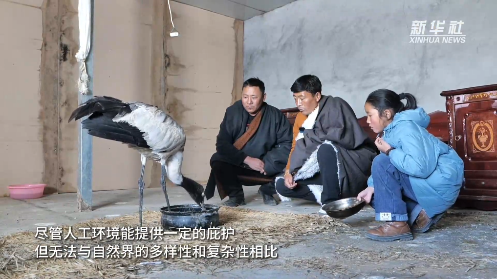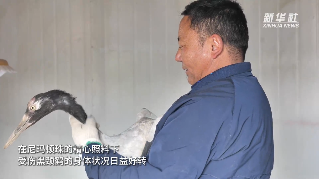 去年10月,野生動物保護員尼瑪頓珠在阿熱濕地例行巡護時發(fā)現(xiàn)一只左側(cè)翅膀受傷的黑頸鶴,跟上級有關(guān)部門匯報后,尼瑪頓珠將其帶回家中,開始了為期五個月的治療和康復(fù)。