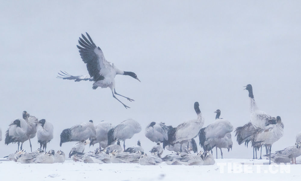 資料圖:在虎頭山水庫(kù)越冬的黑頸鶴