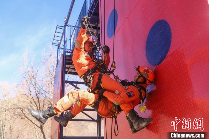 山岳救援繩索個人技術競賽現(xiàn)場,全面考驗參賽隊員繩結制作、倍力系統(tǒng)制作、上升、過繩結、輔助攀登、下降、繩索轉換等多項救援技術。