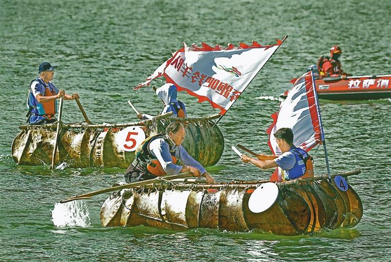 參賽隊(duì)伍在牛皮船比賽中。記者 白瑪澤旺 攝