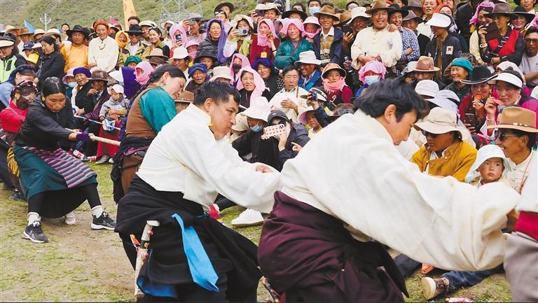 恰拉山以北的林周縣境內(nèi),處處是一片湖光山色交相輝映、風(fēng)吹草低見牛羊的美景,熱振國家森林公園、旁多水庫、生態(tài)長廊阿堆溝等旅游景點集中在北部三鄉(xiāng)?!袄_紛四季·多彩林周”活動在林周縣唐古鄉(xiāng)藏雄村舉辦。從拉薩出發(fā),驅(qū)車170公里,翻越海拔5000多米的恰拉山。一路上,古柏環(huán)繞,云霧繚繞,漫山遍野的杜鵑花競相綻放,宛如進(jìn)入了世外桃源。