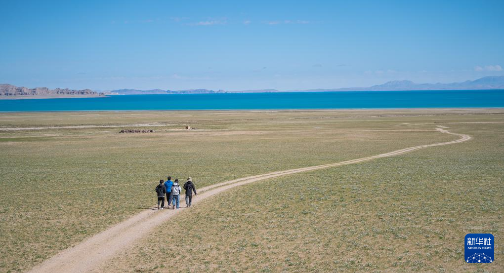 6月22日,游客漫步色林錯(cuò)湖畔。新華社記者 丁增尼達(dá) 攝