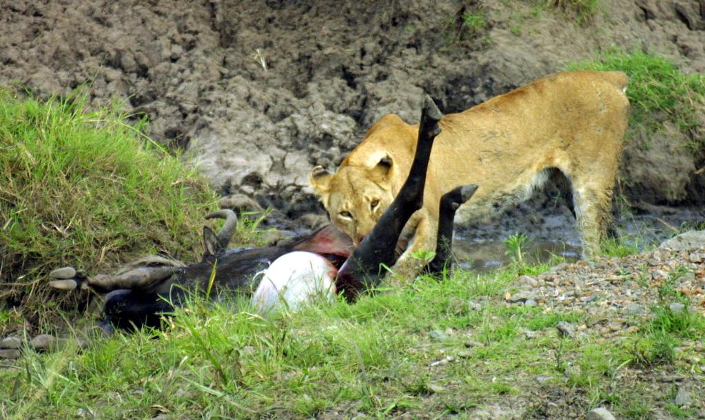 在馬賽馬拉國家保護(hù)區(qū),一頭獅子正在享用自己的獵物。