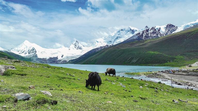 薩普雪山,坐落于那曲市比如縣羊秀鄉(xiāng)的普宗溝深處,是大自然的杰作。這座壯麗的雪山腳下,冰川如同時(shí)間的印記,靜靜流淌;湖泊如鏡,倒映著天空的純凈與雪山的威嚴(yán);廣闊的草場(chǎng)綠意盎然,牛羊成群,和諧共生。這里的景致宛如人間仙境,美得令人窒息,讓無數(shù)游客和攝影愛好者神往。