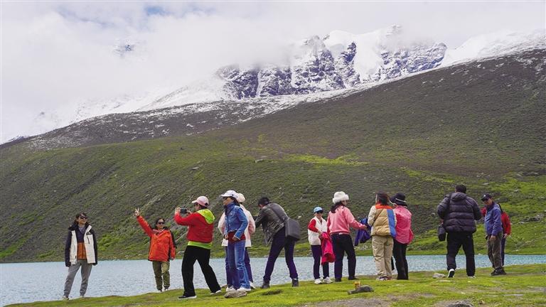 “眼前的景色如此浩瀚,無論我們?nèi)绾闻Γ紵o法將其完全收入眼底;手中的相機(jī)快門不停地按下,卻總感覺無法捕捉到每一處細(xì)節(jié)的美麗;社交媒體上的照片和視頻,雖然已經(jīng)分享了無數(shù),但總覺得還有更多美好未能展現(xiàn)。言語(yǔ)在這一刻顯得如此蒼白無力,無法完全傳達(dá)我們面對(duì)美景時(shí)的激動(dòng)心情?!边@是河南游客張曉明和劉芳夫婦對(duì)薩普雪山的贊美。置身于這絕美的畫卷中,一聲聲驚嘆,是他們對(duì)大自然鬼斧神工的贊美,也是他們內(nèi)心震撼的真實(shí)寫照。
