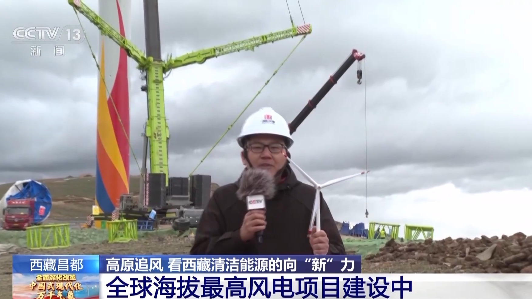 總臺記者 蔣勇:我現(xiàn)在是在西藏昌都市八宿縣全球海拔最高的風(fēng)電項(xiàng)目——八宿風(fēng)電的施工現(xiàn)場。這里的平均海拔達(dá)到5050米,最高處接近5200米。如果加上風(fēng)機(jī)自身的高度,風(fēng)機(jī)的最高海拔將達(dá)到5300米。西藏清潔能源十分豐富,而風(fēng)能資源主要集中在5000米以上的超高海拔地區(qū)。