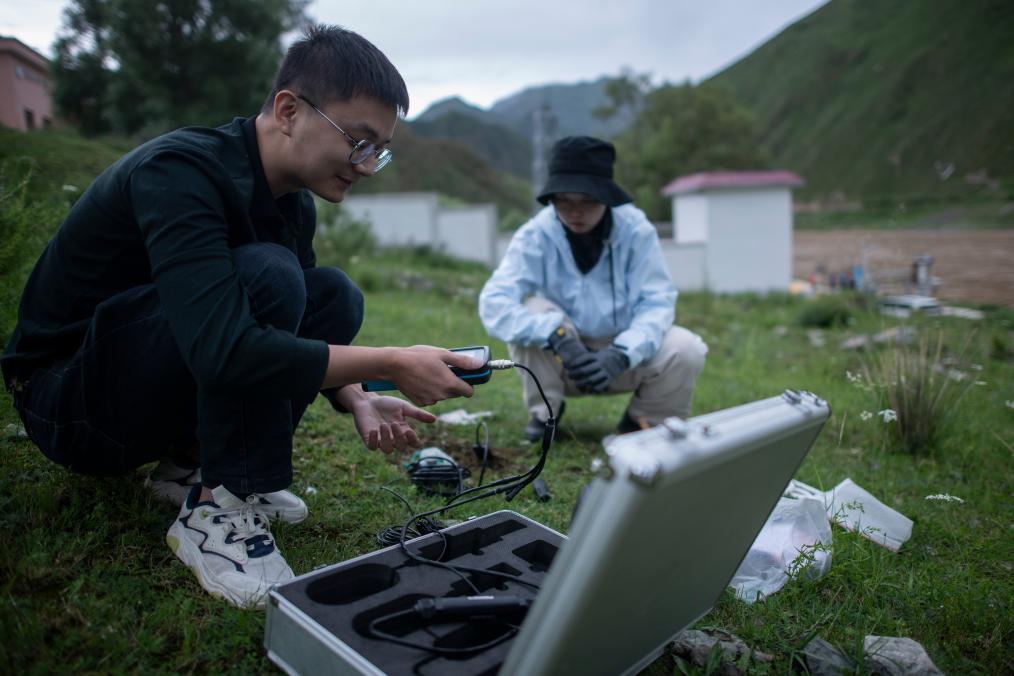 7月20日,在直門達水文站,長江科學院空間信息技術(shù)應用研究所廖茂昕(左)和付珺琳進行土壤多參數(shù)檢測。新華社記者 伍志尊 攝