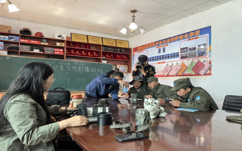 “喜馬拉雅生靈的朋友”自然影像團(tuán)隊(duì)正在對(duì)管護(hù)員們進(jìn)行培訓(xùn)(受訪(fǎng)者供圖)