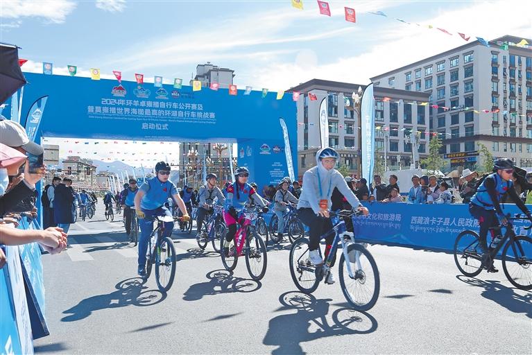 9月1日,由山南市人民政府主辦的2024年環(huán)羊卓雍措自行車公開賽及普莫雍措世界海拔最高環(huán)湖自行車挑戰(zhàn)賽啟動(dòng)儀式舉行。啟動(dòng)儀式上,歌舞表演、花式自行車表演、5公里環(huán)城騎行等活動(dòng)相繼上演,為正式比賽營造了熱烈氛圍。