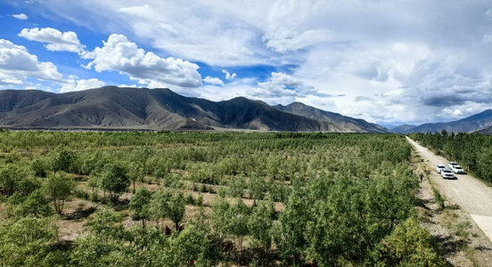 二十多年前的南木林縣惡劣的自然環(huán)境嚴(yán)重影響了全縣各族群眾生產(chǎn)生活。2002年,山東援藏干部抵達(dá)南木林縣,面對(duì)周圍的一片光禿,大力開(kāi)展植樹(shù)造林,誓把高原變綠洲。從那時(shí)起,一批批山東濰坊援藏干部人才前赴后繼,以一茬接著一茬干、一張藍(lán)圖繪到底的毅力決心建成了世界屋脊上的“塞罕壩”。讓綠水青山與冰天雪地相伴,讓綠色生態(tài)與民生福祉相連,時(shí)間不語(yǔ),光影見(jiàn)證。