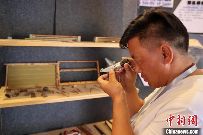 9月24日,記者跟隨2024年青海湖生態(tài)保護能力提升培訓(xùn)班來到青海省海南藏族自治州貴德縣青海青藏蜜蜂良種養(yǎng)殖場,展示柜里擺放的蜜蜂標本。中新社記者 薛蒂 攝