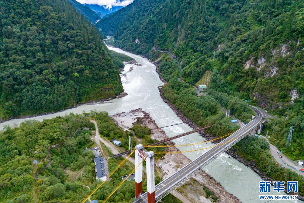 10月13日拍攝的怒江大橋(無(wú)人機(jī)照片)。新華網(wǎng) 旦增努布 攝