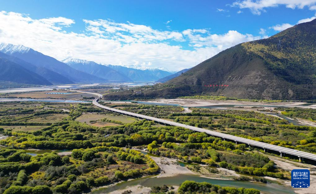 這是在林芝雅尼國(guó)家濕地公園尼洋河畔拍攝的生態(tài)監(jiān)測(cè)系統(tǒng)(10月24日攝,無(wú)人機(jī)照片)。新華社記者 劉天宇 攝