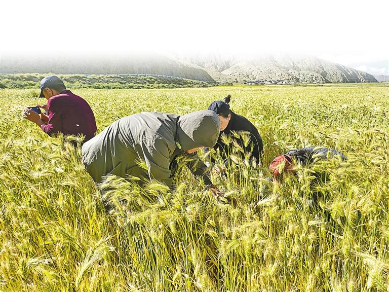 圖為農(nóng)業(yè)專技人員深入山南農(nóng)區(qū)開展糧食測產(chǎn)工作。記者 巴桑旺姆 攝