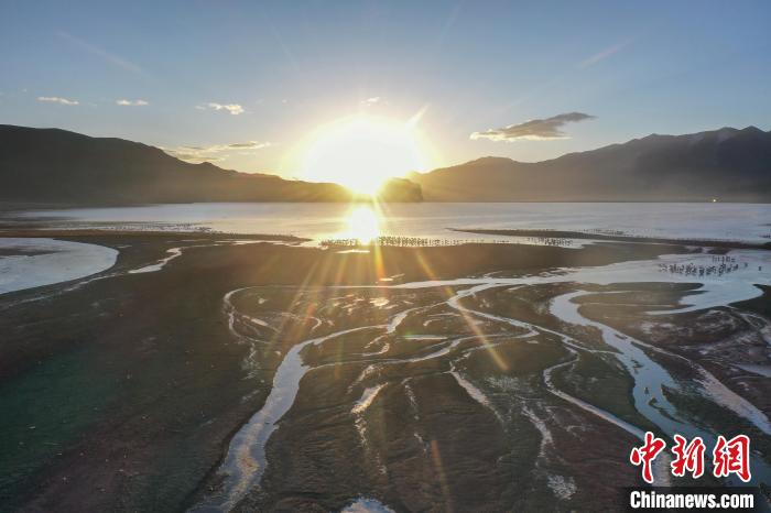 11月27日晨,西藏自治區(qū)拉薩市林周縣黑頸鶴保護(hù)區(qū)內(nèi),大量越冬的黑頸鶴在虎頭山水庫(kù)覓食、嬉戲。林周縣位于拉薩河上游及澎波河流域,平均海拔約4200米,是黑頸鶴的主要越冬地之一。(無(wú)人機(jī)照片)中新社記者 貢嘎來(lái)松 攝