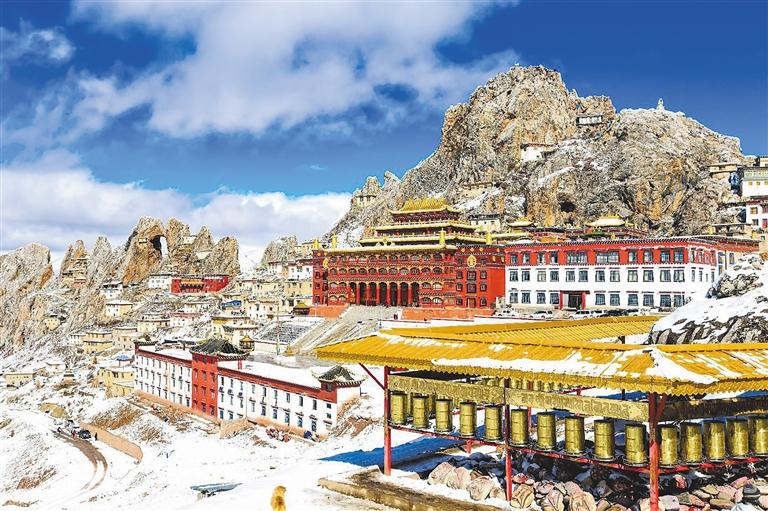冬季的昌都,是一場視覺的盛宴。當潔白的雪花悠然飄落,覆蓋了連綿的山巒與靜謐的然烏湖,這里仿若成了大自然巧手繪制的一幅多彩畫卷。而大雪覆蓋著的三色湖,此刻也別有風情,皚皚白雪如同輕柔的面紗,遮住了她的容顏,卻又增添了幾分神秘的魅力。遠遠望去,仿佛三個羞澀的美麗姑娘,欲語還休,吸引著人們去探尋她的秘密。再看看孜珠寺,金頂白雪、紅墻銀衣,古色古香的建筑加上絕美的雪景,時間仿佛在此刻凝結。