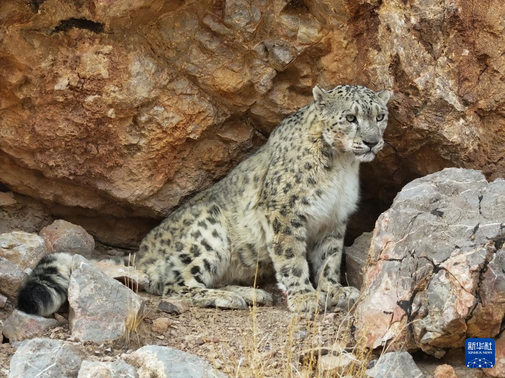 西藏阿里改則縣改則鎮(zhèn)玉多村附近巖山區(qū)域拍攝到的國家一級(jí)保護(hù)動(dòng)物雪豹(4月18日攝)。