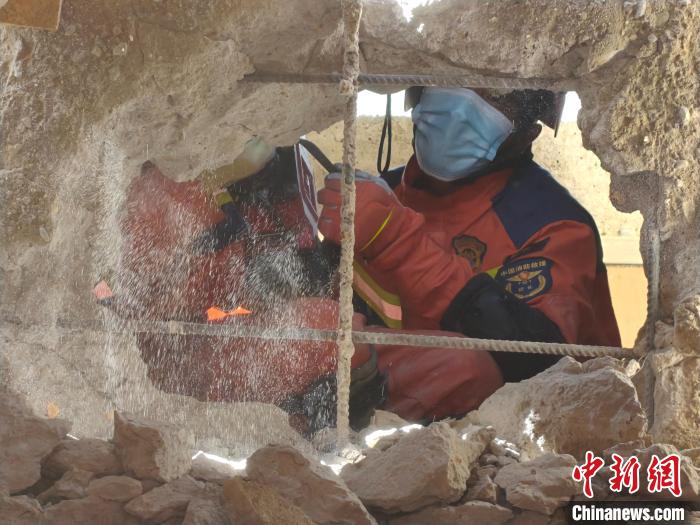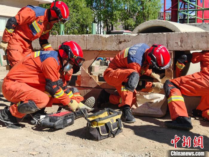 圖為消防員開(kāi)展模擬樓層層疊倒塌頂撐救援。洛桑頓珠 攝