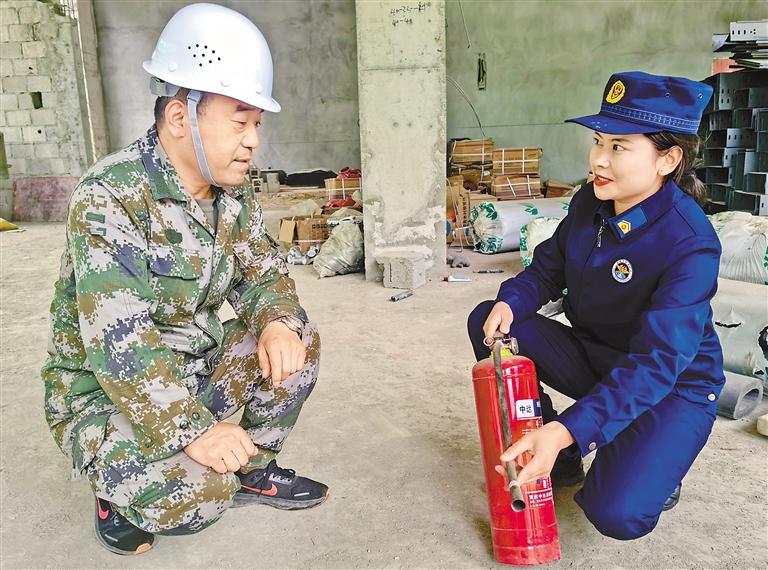 消防員正在轄區(qū)內(nèi)指導(dǎo)建筑工人正確使用消防器材。記者 王敏 通訊員 李宗昌 攝