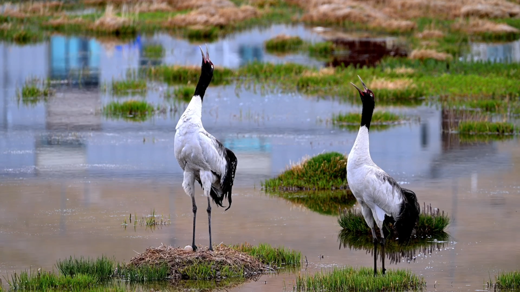 說到這里,次成塔青突然轉(zhuǎn)過身,看向高高麗麗和它們的孩子。開始下雨了,水面上鋪滿了細(xì)密的漣漪,而在濕地中央那一個(gè)不大的巢上,是一動(dòng)不動(dòng)、用身子緊緊護(hù)住孩子的黑頸鶴??粗@一幕,風(fēng)雨似乎也沒有那么刺骨了……