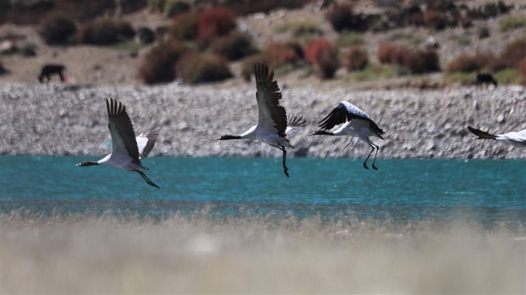 據(jù)了解,每年10月中下旬,前往墨竹工卡縣越冬的黑頸鶴會陸續(xù)抵達(dá),它們的活動范圍主要集中在唐加鄉(xiāng)、扎西崗鄉(xiāng)、工卡鎮(zhèn)、甲瑪鄉(xiāng)及扎雪鄉(xiāng)一帶,成為當(dāng)?shù)厍锒竟?jié)一道獨(dú)特的生態(tài)風(fēng)景線。在西藏,黑頸鶴的身影遍布55個縣域,它們主要選擇高原河流、湖泊、沼澤和草甸等濕地作為棲息地。隨著西藏生態(tài)環(huán)境的改善以及人們對野生動物保護(hù)意識的增強(qiáng),黑頸鶴的種群數(shù)量也在逐漸增多。2000年,黑頸鶴的數(shù)量大概是4000只,到現(xiàn)在整個西藏越冬區(qū)記錄到黑頸鶴的數(shù)量超過1萬只。