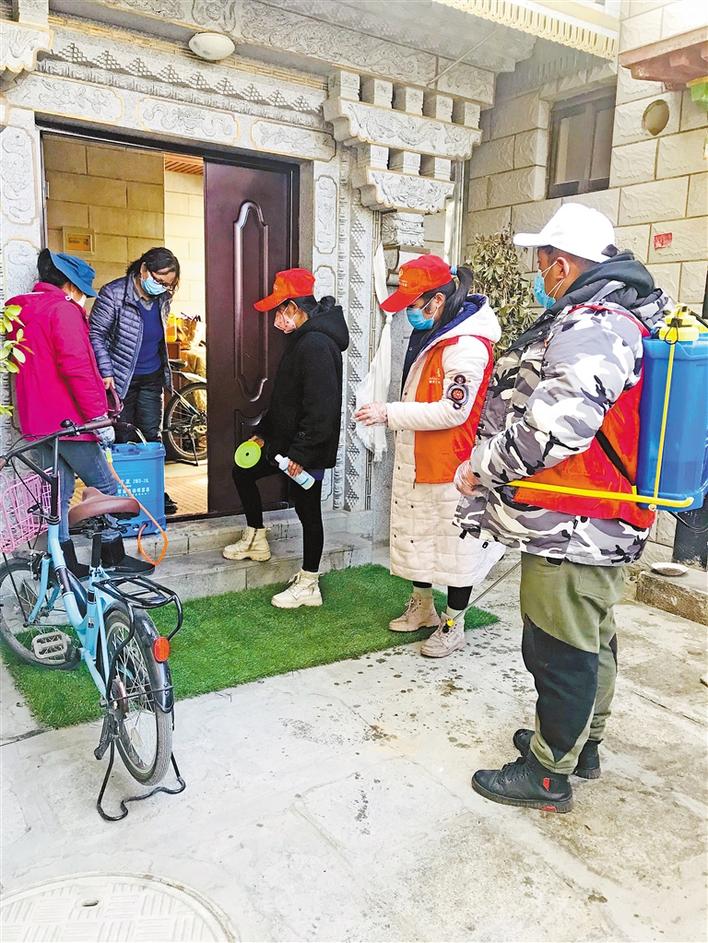 玉吉組織志愿者前往拉薩市民家中免費(fèi)開展消毒工作。