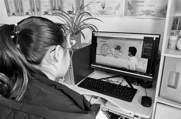 拉薩市第一中學(xué)初一學(xué)生楊晶晶在家上網(wǎng)課?! ∥?圖 記者 李海霞