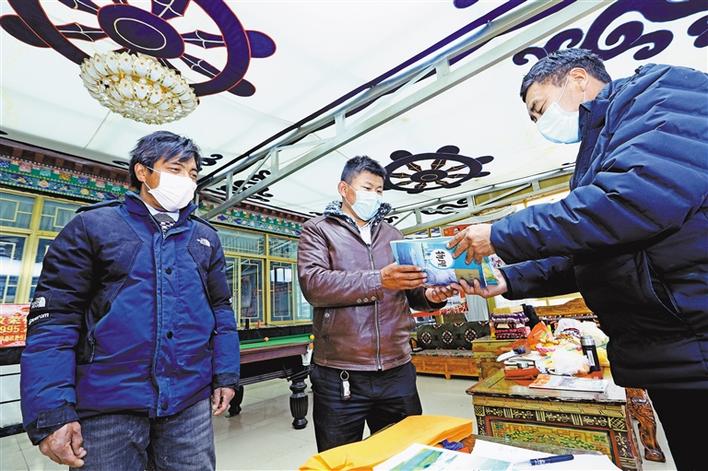 西藏拉薩市墨竹工卡縣甲瑪鄉(xiāng)龍達(dá)村村干部把學(xué)生教材送到家