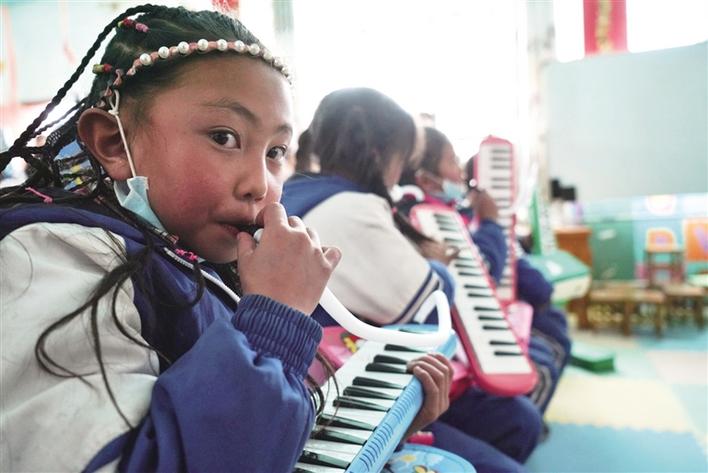 口風琴擁有良好的和聲能力,廣泛應用于各類音樂中。但是,對于果組小學的孩子們來說,這是他們第一次見到口風琴。布扎西是該小學三年級的一名小學生,他是校園“小歌星”,每年六一兒童節(jié)學校舉行文藝匯演時,他都要演唱自己的拿手歌曲——《我的家鄉(xiāng)》。第一次見到口風琴,布扎西非常開心:“謝謝柏雪老師送給我們的禮物,我以后會好好學習,爭取早日吹奏《小星星》!”