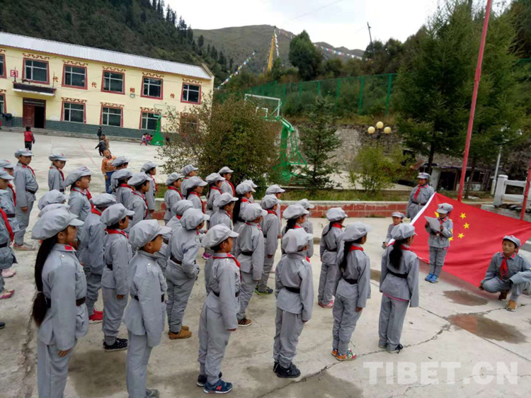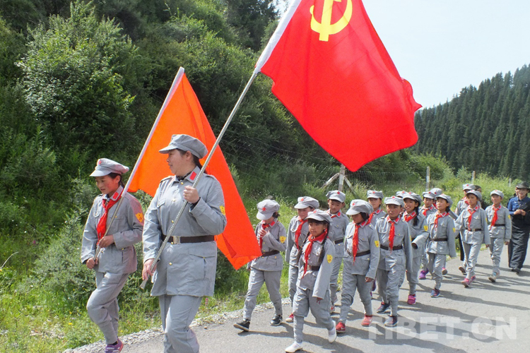 圖為班瑪紅軍小學(xué)學(xué)生在參加學(xué)校舉辦的紅色活動
